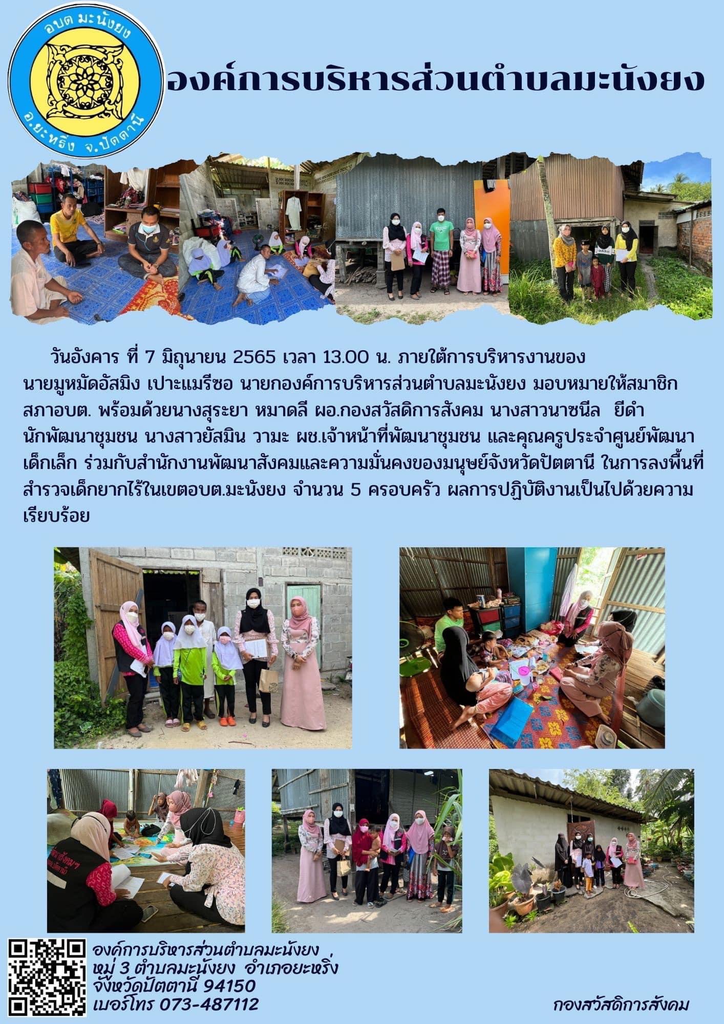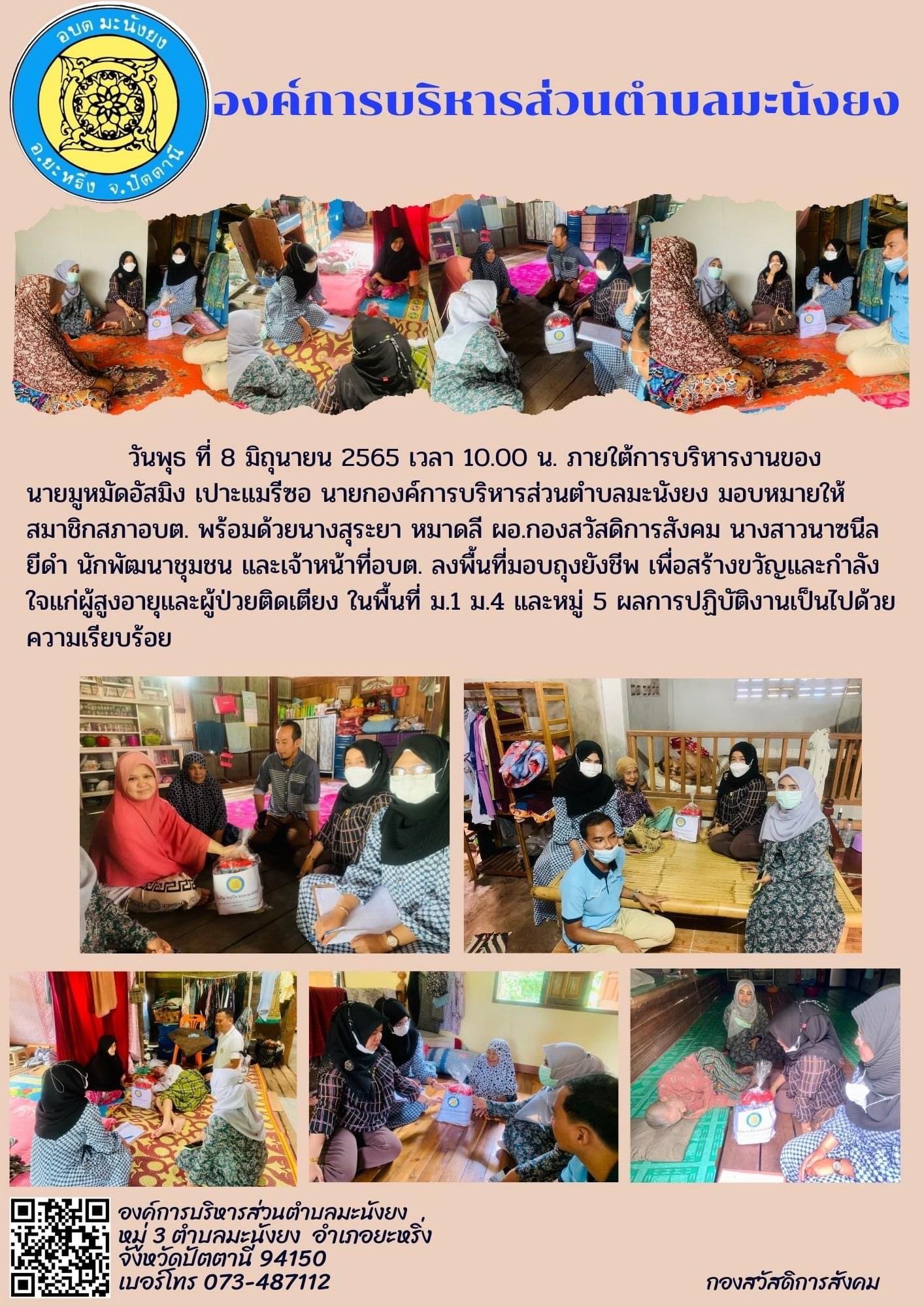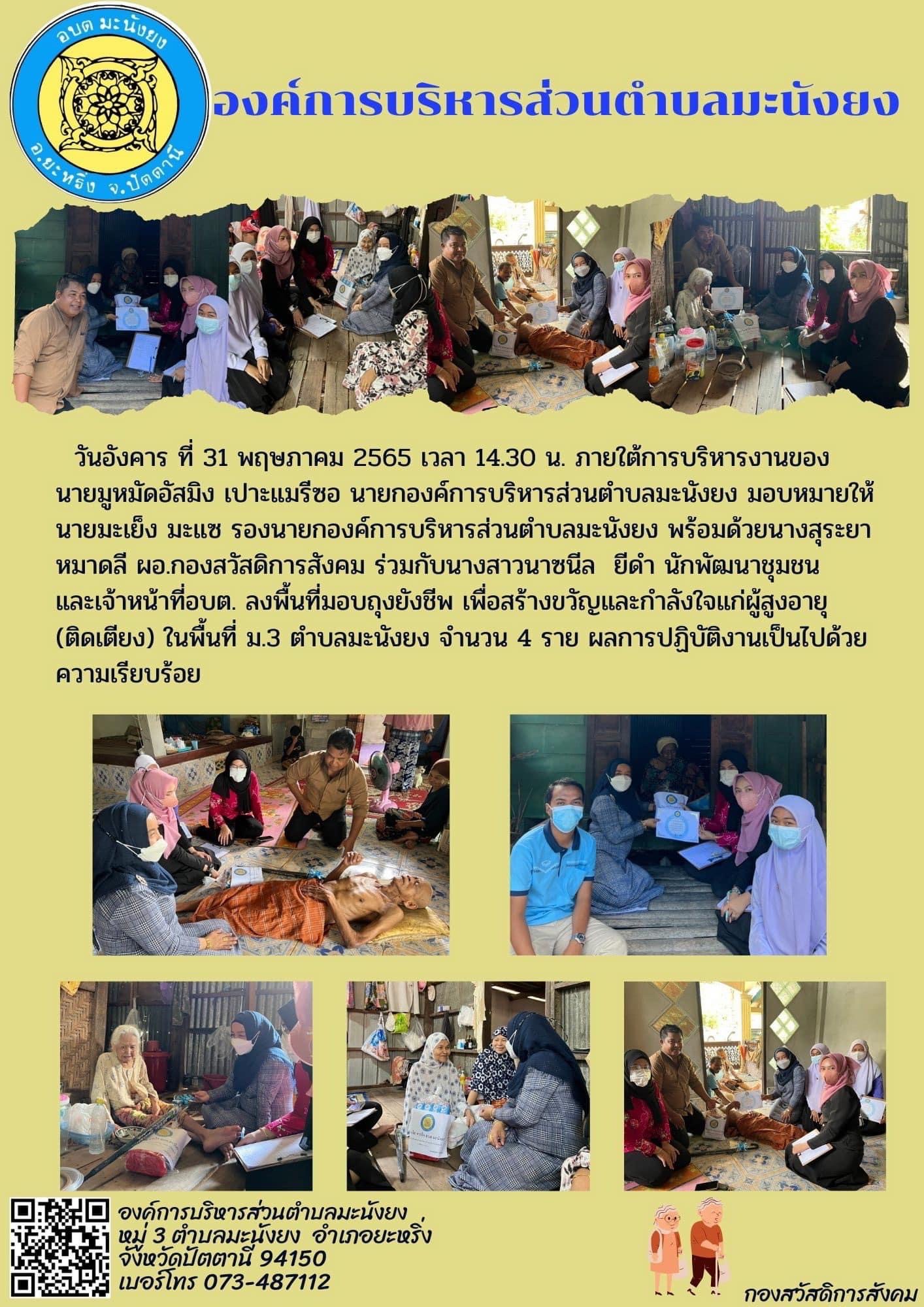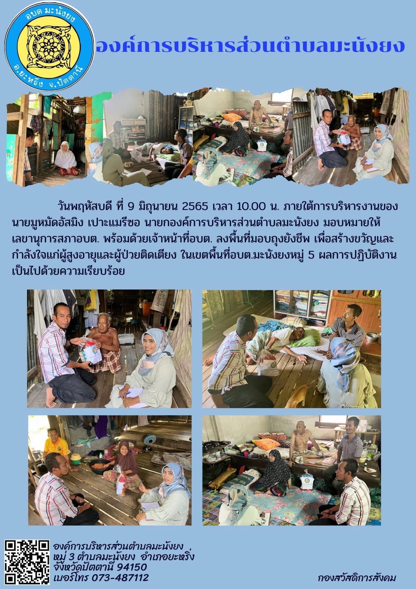 ภาพกิจกรรมการลงเยี่ยมผู้สูงอายุที่มีภาวะพึ่งพิงในเขตพื้นที่ตำบลมะนังยง ประจำปี 2565